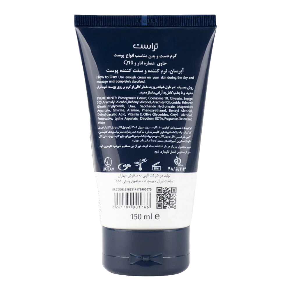 آبرسان قوي، مرطوبكننده و نرمكننده پوست ضدچروك و سفتكننده پوست (حاوي كوآنزيم Q10) تقويت لايه دفاعي پوست آنتي اكسيدان قوي (حاوي ويتامينE) شادابكننده و لطافتبخش پوست مناسب انواع پوست