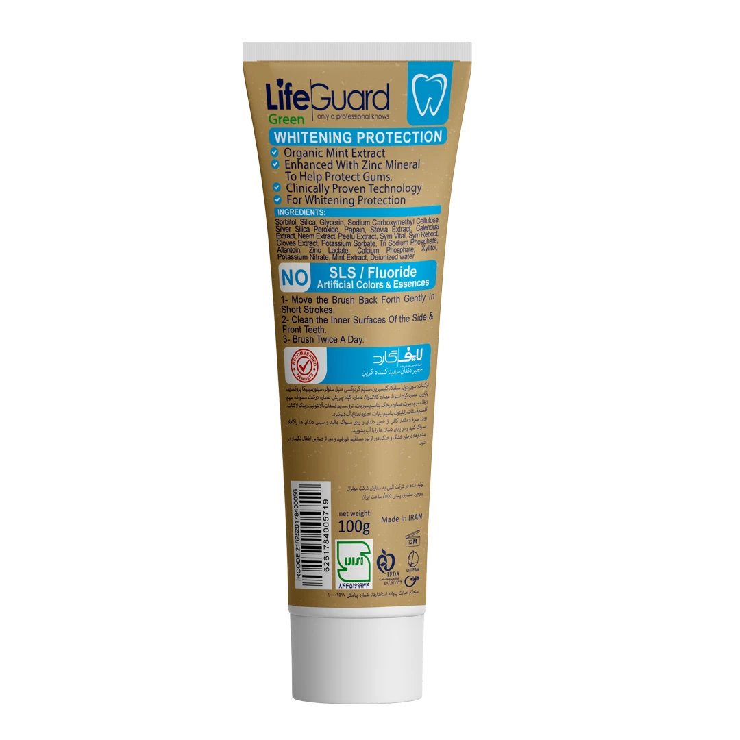 حاوی ترکیبات و عصارههای گیاهی سفید کننده دندان از بین برنده لکهای دندانی حاوی عصارههای گیاهی برطرفکننده پوسیدگی، التهاب و بوی بد دهان افزایش استحکام دندانها و مراقبت از مینای دندان تقویت مخاط و حفظ تعادل فلور میکروبی دهان قابل استفاده برای همه افراد از 6 سالگی به بالا فاقد فلوراید، SLS ، پارابن، مواد آلرژی زا و اسانس مصنوعی با قابلیت استفاده روزانه